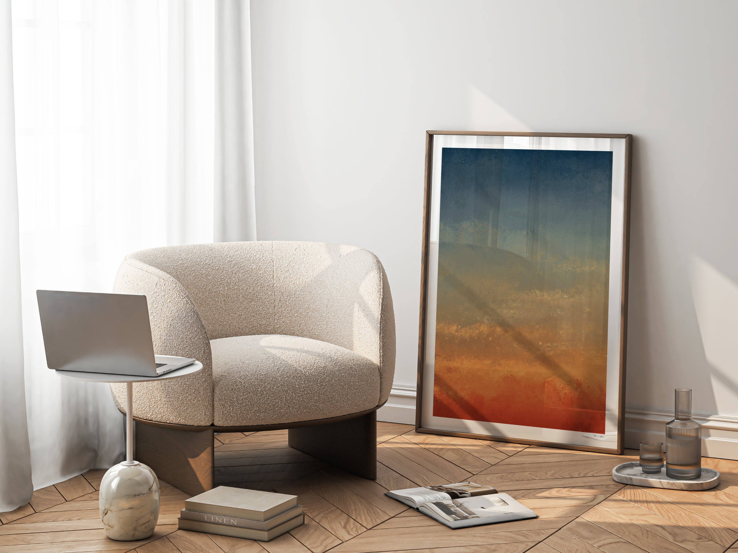Meine abstrakte Kunst ist eine Einladung, innezuhalten. Inspiriert von den Farben des Himmels, dem ersten Licht des Morgens und der tiefen Ruhe der Dämmerung, schaffe ich Werke, die dem Raum eine sanfte Atmosphäre verleihen...