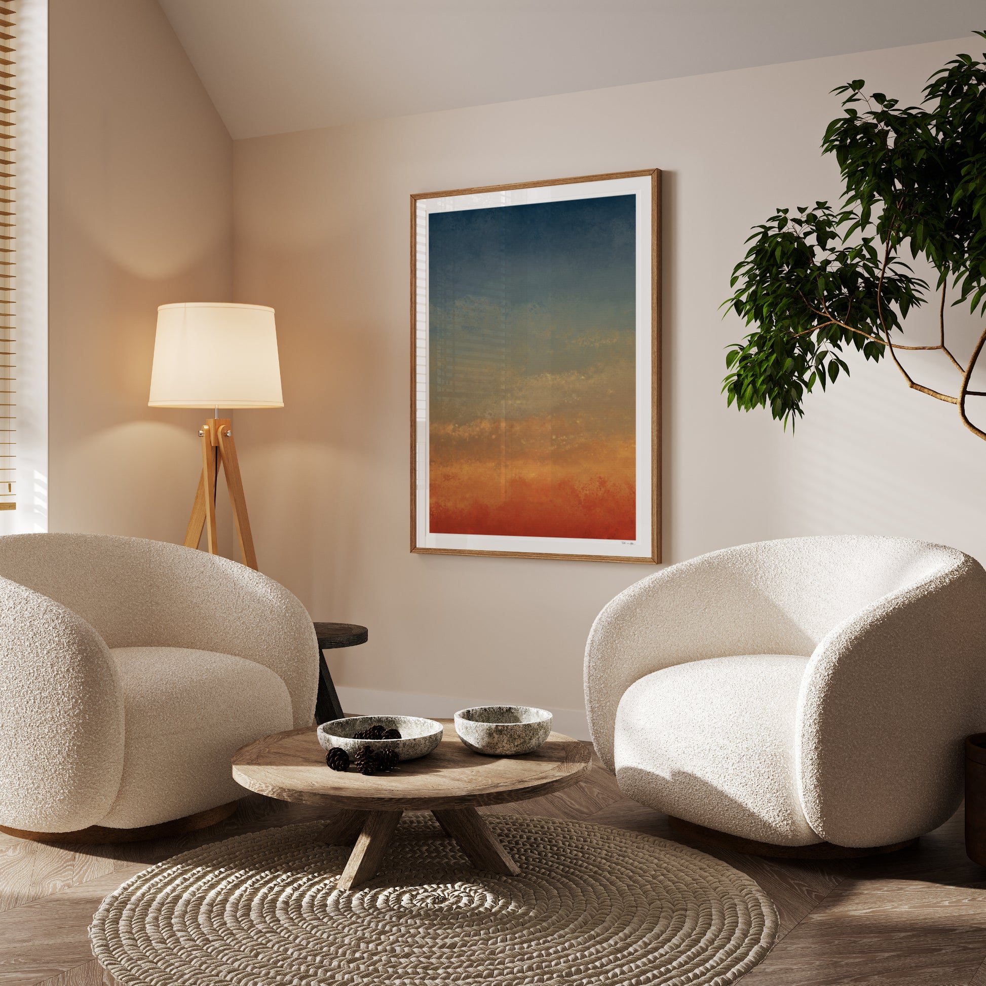 Premium Fine Art Papier: Gedruckt auf schwerem, naturweißem Fine Art Papier (200 g/m²) in Museumsqualität. Die tiefmatte, reflexionsfreie Oberfläche sorgt für eine edle Haptik und verhindert störende Lichtspiegelungen. Es ist säurefrei, FSC-zertifiziert und verzichtet auf chemische Aufheller, wodurch dein Kunstwerk über Jahrzehnte hinweg farbecht bleibt und nicht vergilbt.