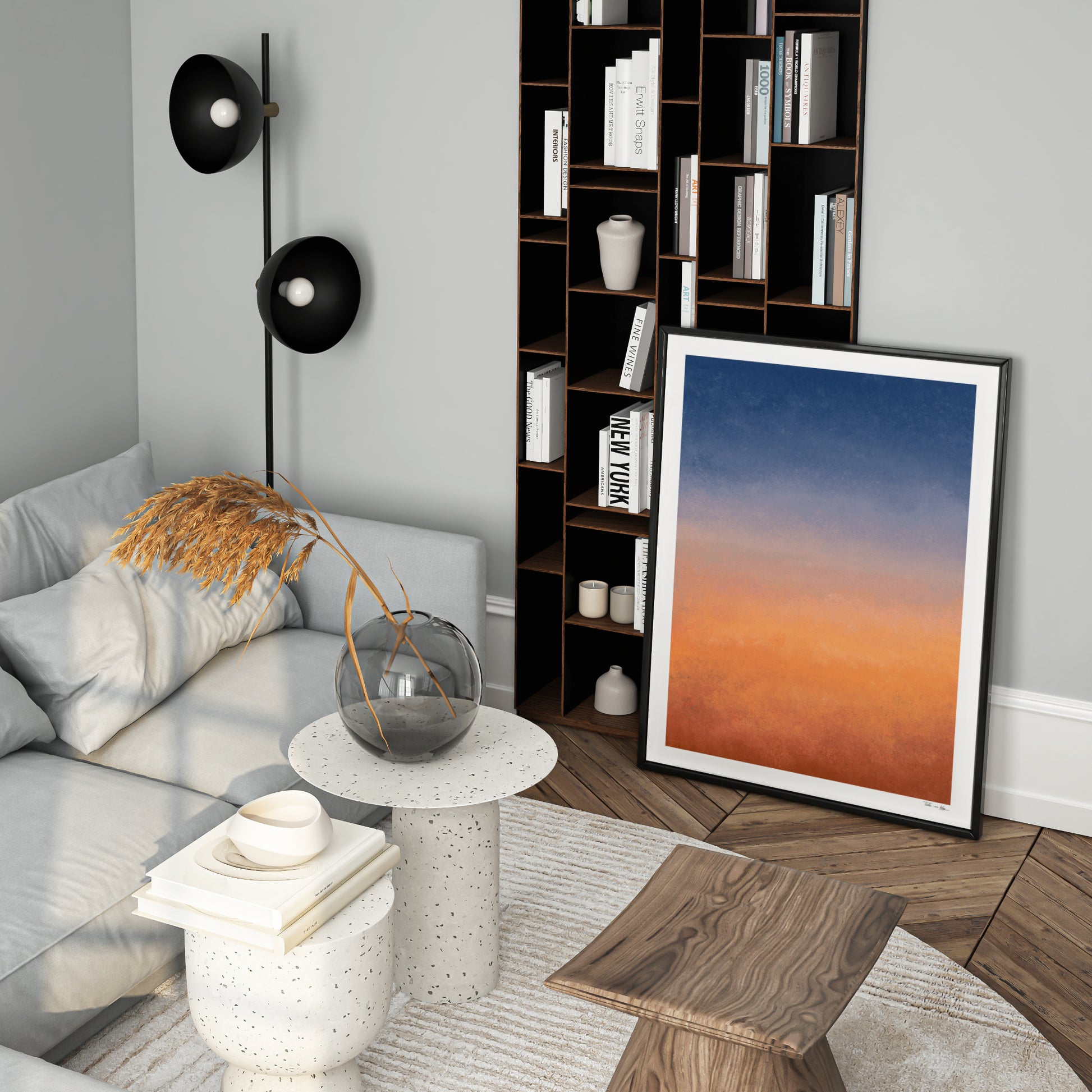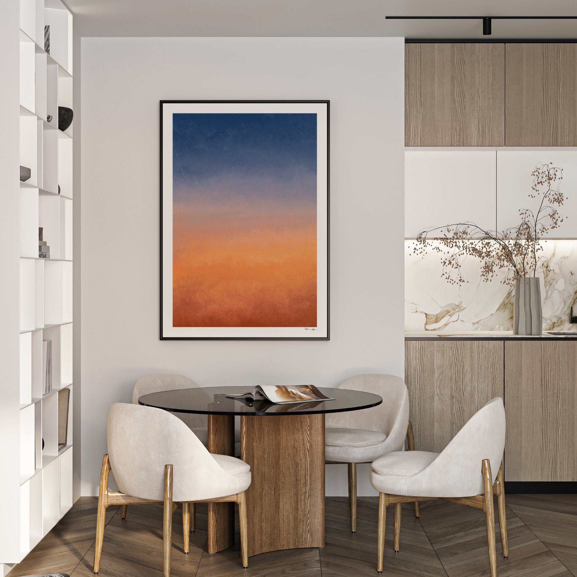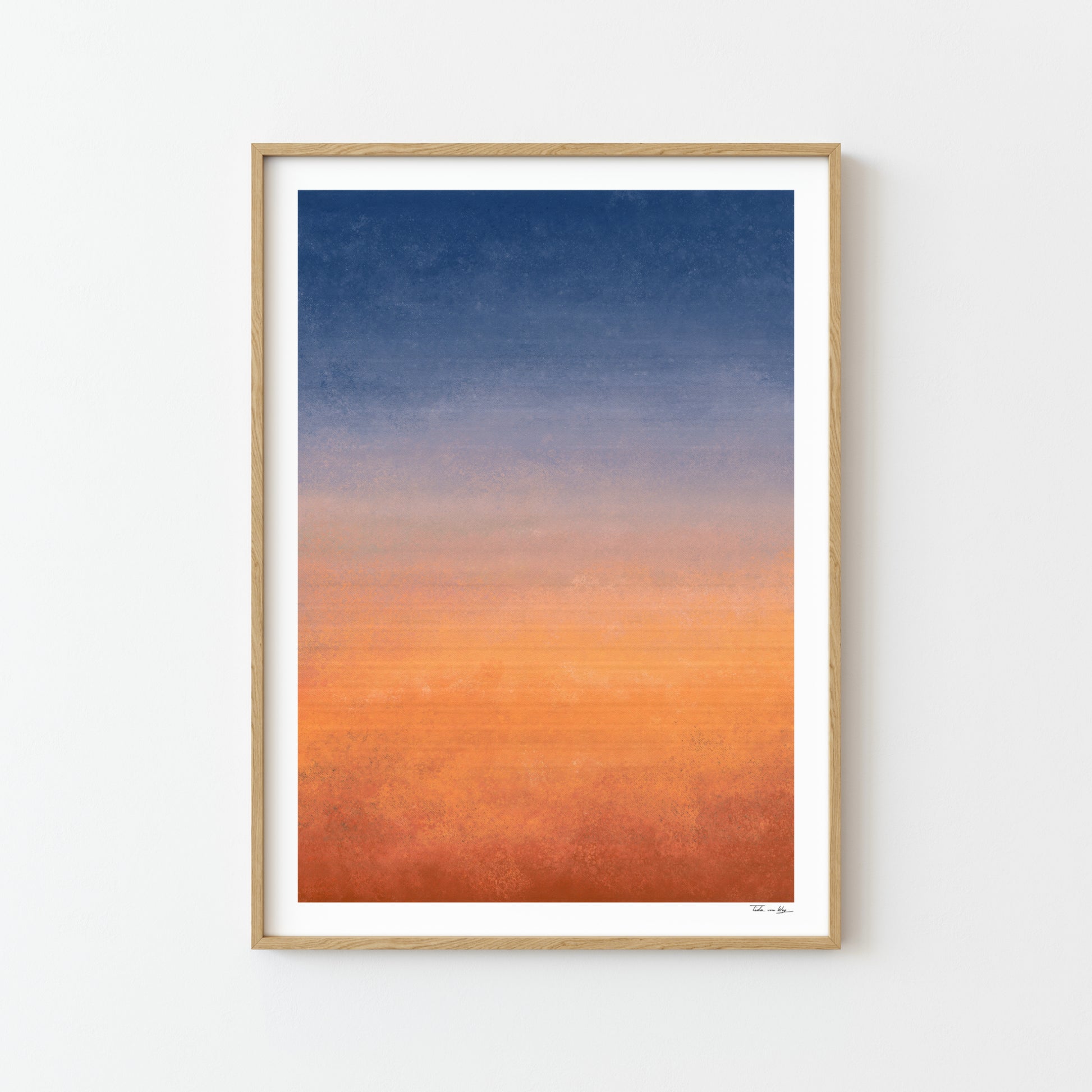 Dieses Kunstwerk fängt die magische Stimmung eines römischen Sonnenuntergangs ein. Mit einem sanften Farbverlauf von tiefem Nachtblau über zartes Rosé bis hin zu warmem Terrakotta bringt „Rome Sunset“ Ruhe und mediterrane Wärme an die Wände.